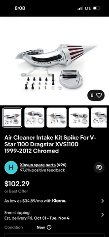 Air Cleaner Intake Kit For V-Star 1100 XVS1100 1999-2012 Chrome. $50. I bought in an open box but never used it. Don't have the bolts it came with. Call or text 7855347825.
