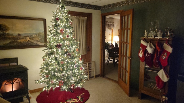 Christmas tree, prelit with stand. Different colors and patterns available. I think it's 7 ft tall. Bought from Hobby Lobby 4-5 years ago. Moved and want a smaller tree. Does not come with decorations. Comes with a large hard storage container.