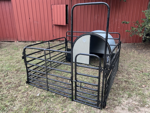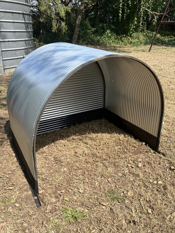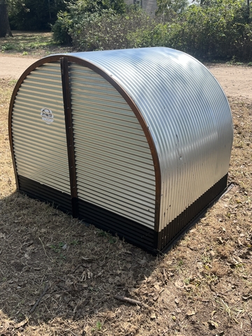 Shelter dimensions are 4’ x 4’. With adjustable rear air flow vent. Price is for the hut only. Add on accessories include full or half front closure, roller for baby pigs, and 6’ x 6’ pen with walk in gate. Would make an excellent dog house!