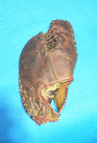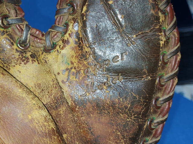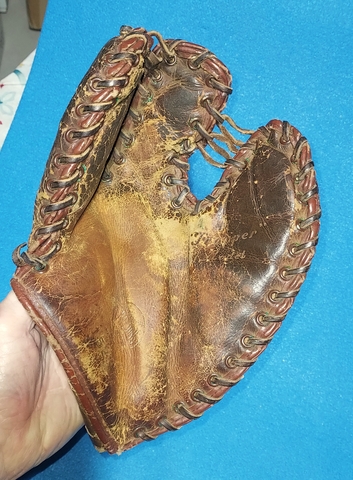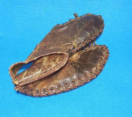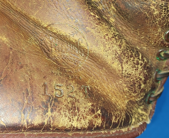 WHAT a piece of baseball history. The 1940s Spalding "Trapper" Model 152T 3 finger RHT Baseball Glove is an authentic original, MADE in the United States. Made for the right-handed thrower, this vintage glove stands as a testament to the classic designs and enduring quality of Spalding's sporting goods. With its vintage charm and historical value, this glove is a collectible that celebrates the Rich Heritage of America's favorite pastime. Whether you're a dedicated baseball enthusiast or a collector of sports memorabilia, this glove is sure to be a noteworthy addition to your collection.