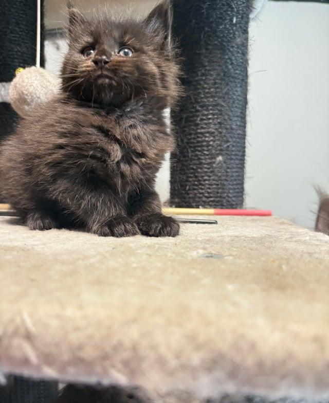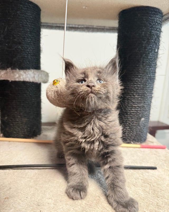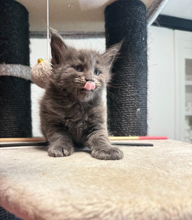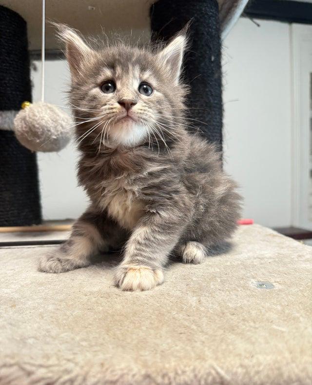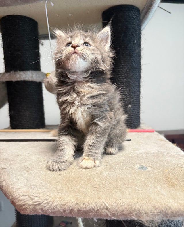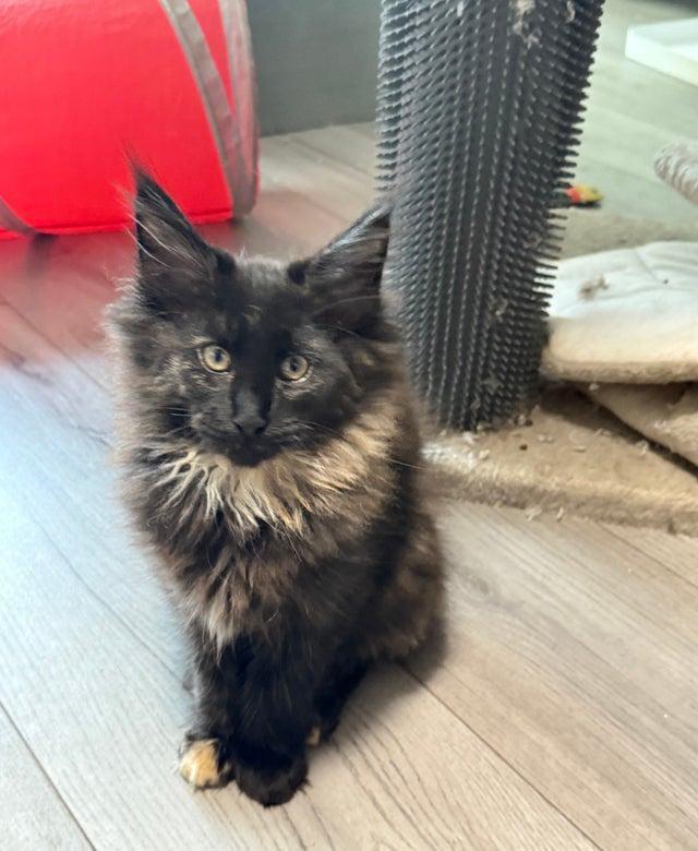 We have a beautiful litter of Maine Coon kittens looking for their forever families! Maine Coons are known for their gentle nature, playful personalities, and stunning looks the perfect mix of elegance and affection. Available Kittens 2 Girls Black with tortoiseshell ginger markings Tabby grey with white 2 Boys Solid black Grey-blue All kittens are active (not neutered), well-socialized, and full of character. Fully vaccinated and available from 13 November.. They are playful, curious, and raised in a loving home environment.