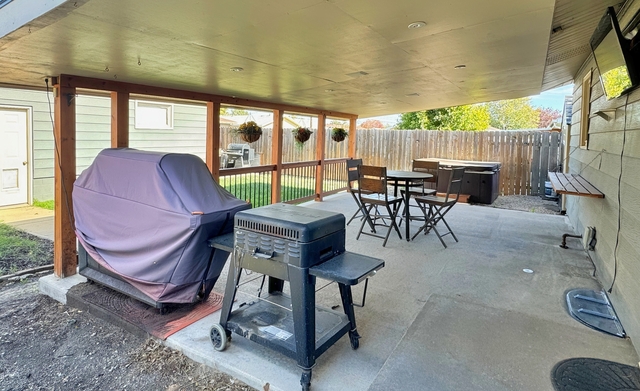 Out back, relax on the covered patio with grilling space and take advantage of the detached garage with alley access. Extras include new landscaping, vinyl windows, sprinkler system with private well, storage shed, and a newer roof. All kitchen appliances, wine fridge, washer & dryer stay. Hot tub available for purchase as well!