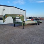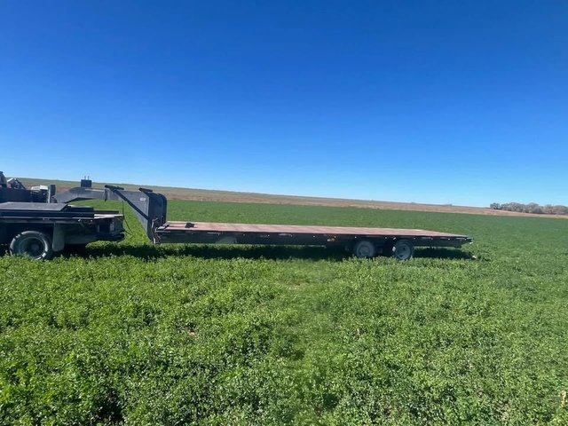 1997 30’ gooseneck trailer. 2-8000K axles both with WORKING brakes, duals, 10’ long by 22” ramps, brake lights and turn signals work