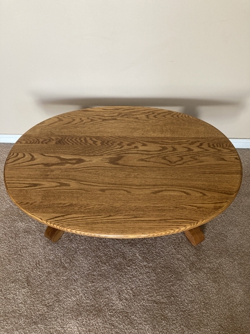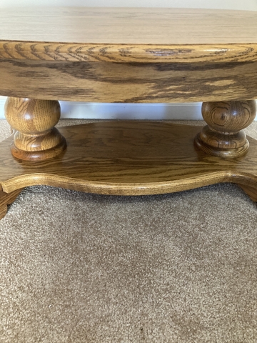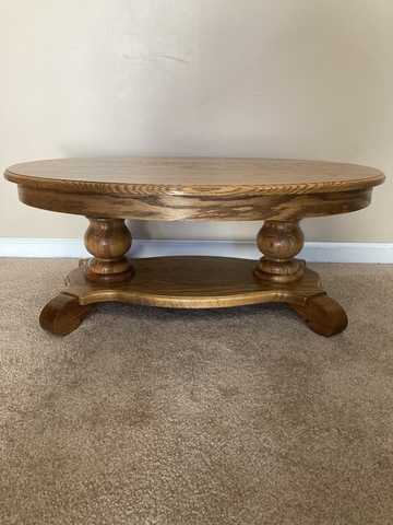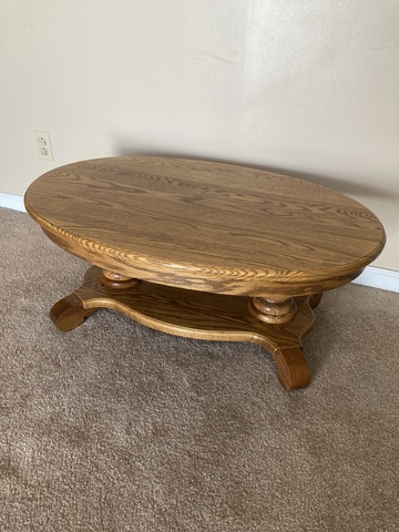 Heirloom solid oak coffee table. This table looks like the day it was made. Mfg. August, 1988. They don't build them like this anymore! Measures 38" long 25" deep 16" high. $90 Call or text 620 Seven65 zero111 or message me here on nextech Item is in Hays.