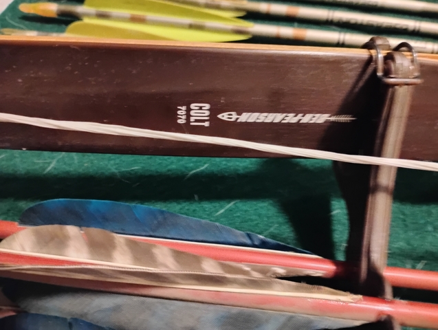 Ben Pearson 7070 Colt recurve bow. Comes with five pin sight, string, 15 arrows, 10 broadheads and arrow holder.To my knowledge the Colt was made in 1966. $175 call or text 785-259-8140 or message me on here.