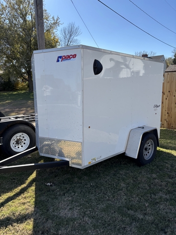 * Pace American 5x8 Enclosed Trailer with a Cone Nose for easier pulling and extra storage.