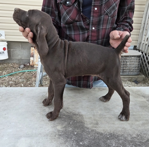 Price Reduced $800.00. AKC Registered GSP born September 2nd. 1 male solid liver and the white-liver is a female. Tails docked and dew removed. These pups are very social able and well bred. Parents are great hunters. Been wormed and have had several rounds of parvo distemper shots. More information please call 785-282-0907