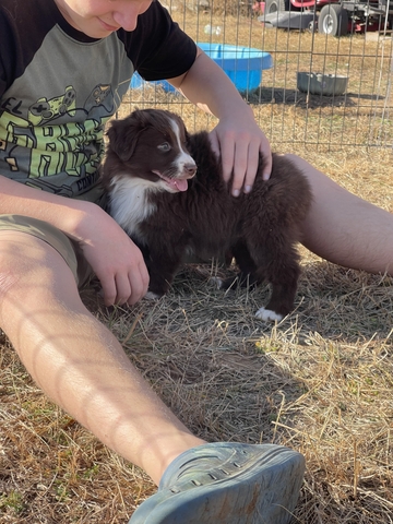 Her tail has been docked, she has been regularly dewormed, well puppy check and first vaccination, raised on our farm by our three boys. Call or text for more information or pictures, or schedule a time to come out and pick your next best friend!