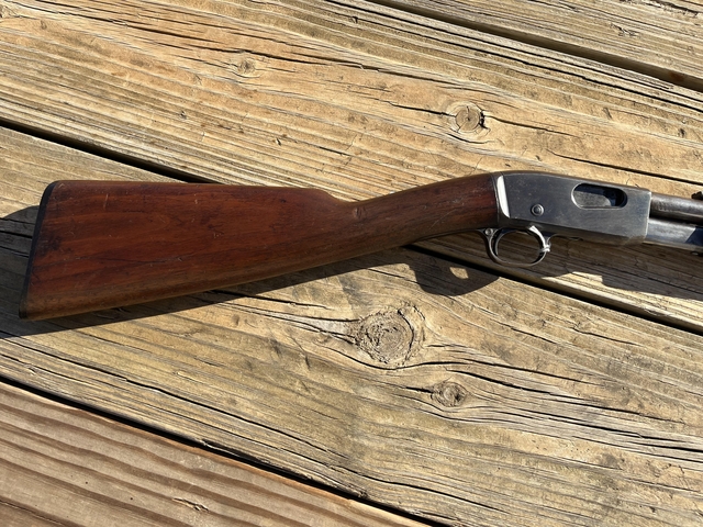 Model 12 Remington pump 22lr manufactured in 1925 and is a good shooter. Will consider trades for handguns let me know what you have.