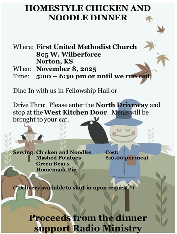 Come join us for our annual Chicken Noodle Dinner! Including a variety of homemade pies!!!!