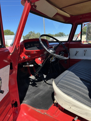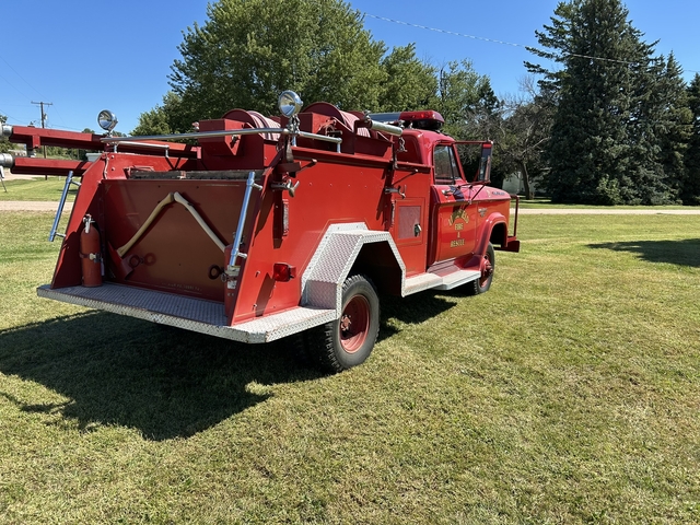 Clean 1965 Dodge W300 Power Wagon with 7323 actual miles. Bought new in September 1965 by the local fire department, this truck was in service until 2008 when it was retired. Overall it's in really good shape, no rust, clean interior, there is slight damage across the hood where it looks like something was laid across it. Floor pans, rockers, and cab mounts are all in excellent shape. Carb could use cleaning/adjustment, it runs rich at idle. 318 with a 4 speed manual trans, clutch and transmission shift smooth, 4wd works as it should. Have put roughly 100 miles on it this summer, steering's tight, truck runs and drives well, everything works great on it.