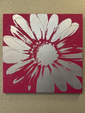 22 1/2" x 22 1/2" canvas in pink and silver.