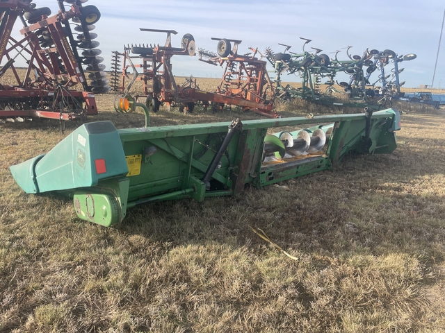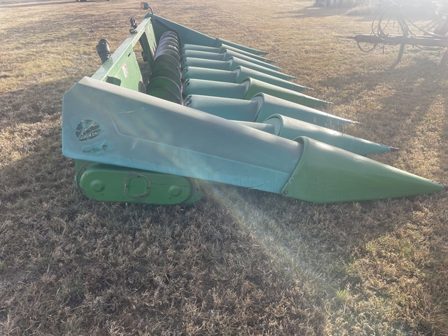 893 John Deere corn head , poly is in pretty good shape , manual deck plates , 8 new gathering chains , pto shafts . $6,500 . 620-397-3632