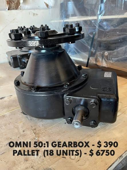 $390 each on the Omni 50:1’s (Lindsey, Reinke, Pierce, Olson or Lockwood compatible) or if you buy a pallet of 18 you save $15 off each gearbox and you get them for $375 each ($6750)