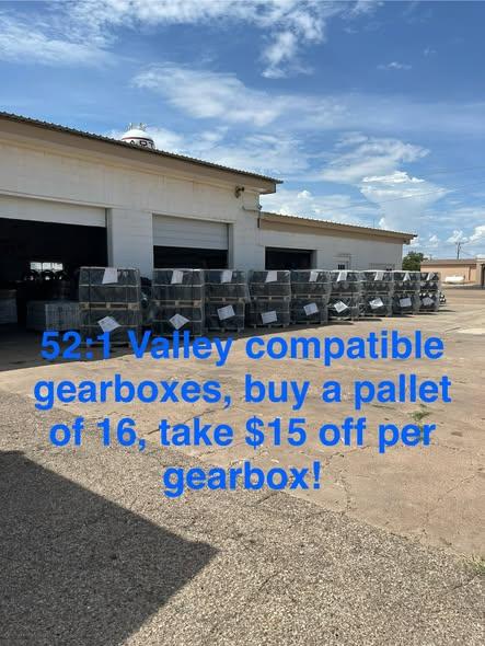 $445 each on the 52:1 Valley compatible. Save $15 off each gearbox if you buy a pallet of 16 ($6880)