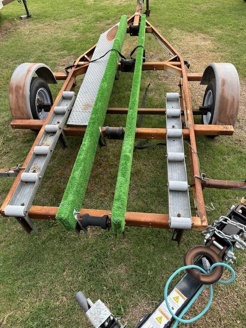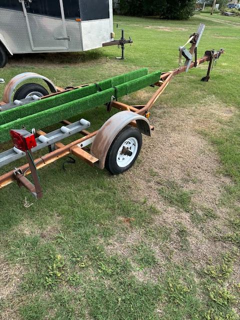Small boat trailer bearing freshly packed,,new carpet on bunks, it had a 16ft jon boat on it