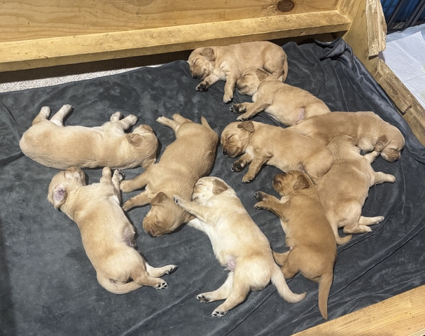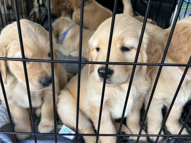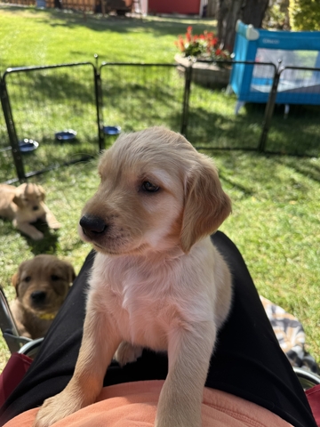 Absolutely beautiful golden retrienver puppies born September 20th. AKC registered and ready for new homes November 15th. Colors mixed with dark red and english cream.
