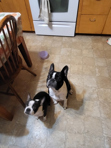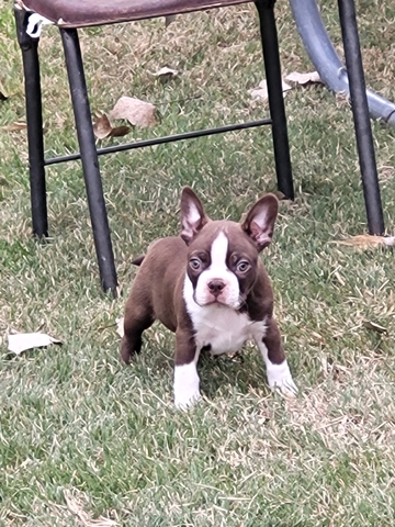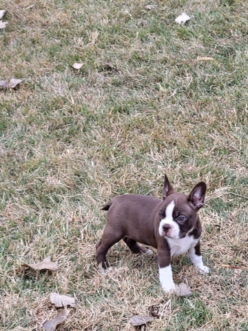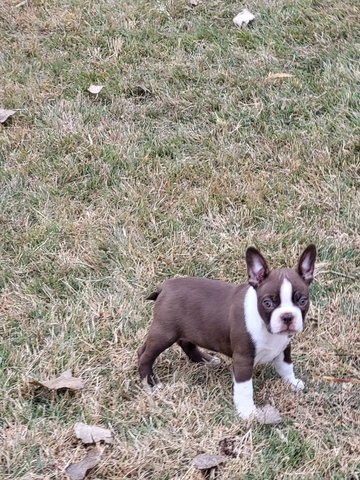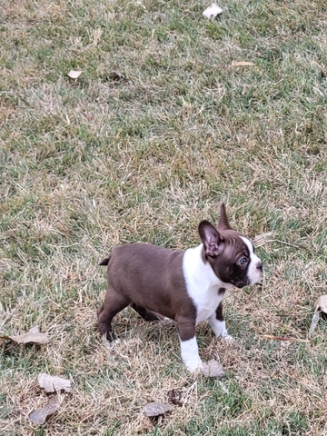 Our family pet Bostons had a beautiful litter of pups! The dad, Wally is a little over a year old and weighs over 32lbs. Molly, the momma, weighs close to 20lbs. We have 1 black and white female, ( she is now sold) 1 black and white male (he is now sold), and 1 brown and white male. We donated the other black and white male for a raffle. These puppies are pure bred and will be registered. Puppies are 9 weeks old, current on all shots. Extremely healthy and energetic! They are ready to go forever homes. Priced at $800 each. For more information contact, Orrin at 785 626 0081