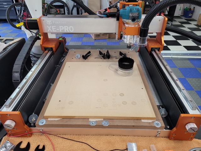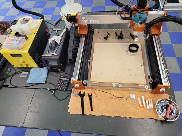 Everything Pictured is for sale! All like new, Over $3000 invested - I bought all this stuff thinking I could make some designs I invented but it just isn't gonna work. XE-4040 Pro with Rails, Masuter Pro w/Laser, Makita, Vac System, Laser Bed, Smart Switch, Dust shoe, Fume Shoe, lottsa Bits!! Both OEM spindles and all spare parts, Rolls of Tape, etc. Wood too