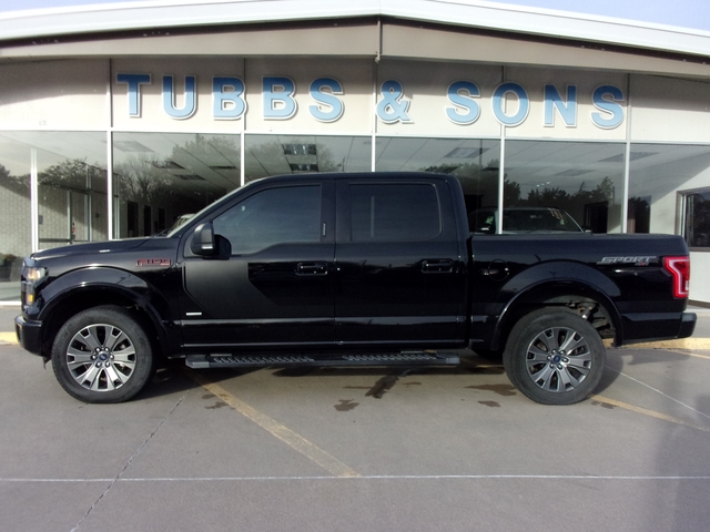 2016 Ford F150 XLT Sport Supercrew, Black w/ Black/Red Cloth, 3.5 V6 Eco Boost, Special Edition XLT Sport, 20” Premium Dark Tarnished Wheels, AM/FM/SAT Radio, Dual Zone Climate, Heated Seats, Local One Owner, Navigation, Dual Roof, 104K Miles