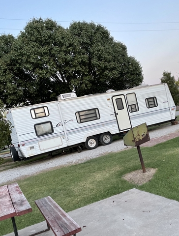 Does need a few minor repairs it has good bones for an old girl just don't have the time to work on it comes with solar panels on top and portable satellite dish called Wally also a 32 inch tv. Located in Russell Kansas