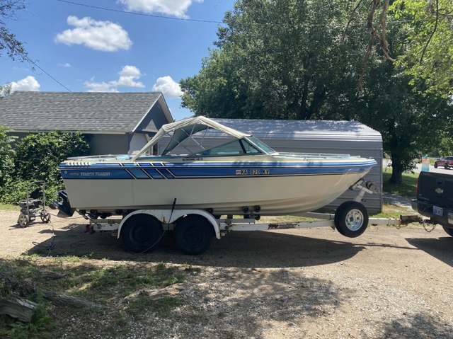 This boat motor runs great everything works as it should except this summer we had it out skiing and when we parked it at the beach it started rolling smoke the cooled regular was melting a wire so it will need a new regulator and the floor is soft in the back so it will need a new floor put down! Our loss is your gain shoot us your best offer we just want it gone!