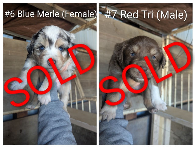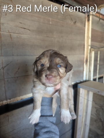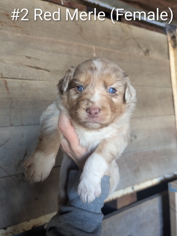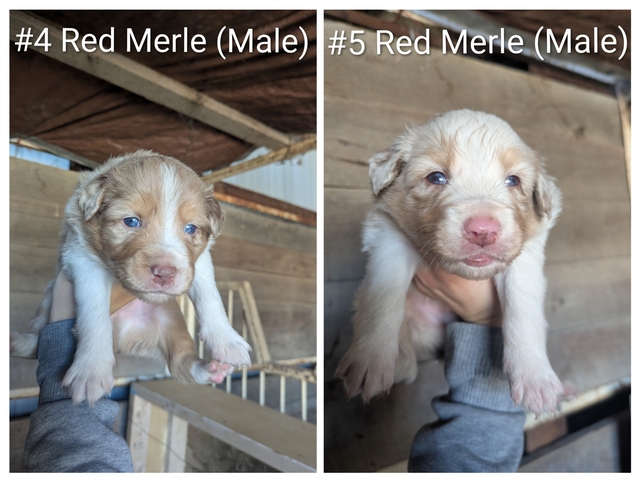 Colors: 2 Red Merle (male), & 3 Red Merle (female