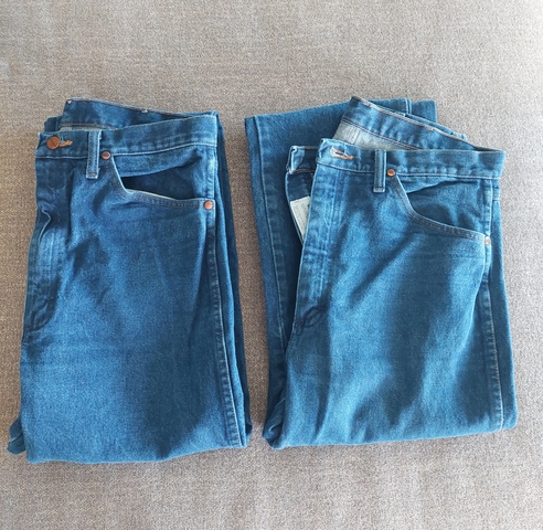 Wrangler 13MWZ, Indigo: 34x38 (two pairs) - I have a third slightly discolored pair of these in the same size that would make perfect work pants. I'll throw them in for free if you buy the other two.