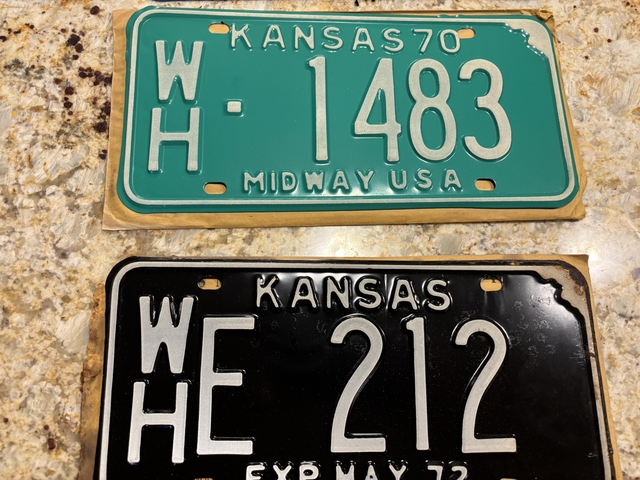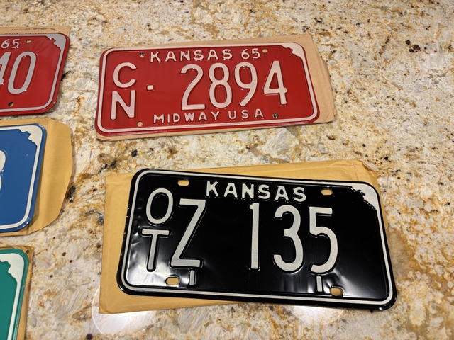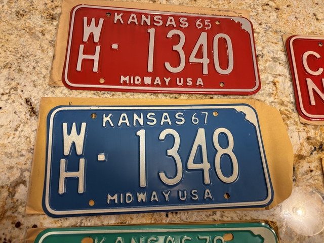 I have approximately 80 vintage Kansas license plates left. They are NOS, still in the wrapper and never been on a vehicle. There will be pictures as to what I have available.