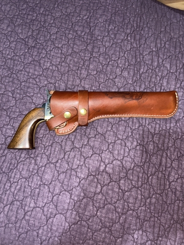 Great revolver like new. Only shot it a few times and thoroughly cleaned every time. Will throw in a container of pyrodex pistol powder about 1/3 of the way full, should cover dozens if not a couple hundred shots, and a container of round balls. I'll throw in enough percussion caps to try it out when you get home until you can buy some. I'll throw in the leather holster as well. So even if you don't have black powder gear this is a great little starter kit! Asking 375 or shoot me an offer