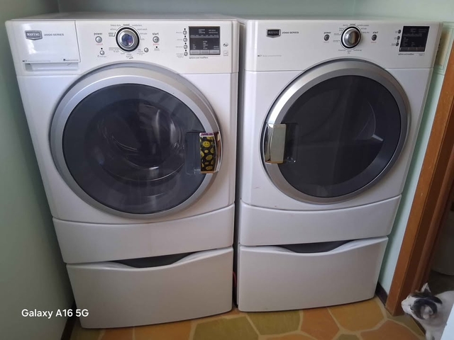 I have for sale my mom's Maytag washer and dryer set 2000 series. Rockers have been replaced, I replaced the pump and the gray boot on door recently. I am just upgrading. Located in Victoria Ks. It does have a blemis on top of the dryer but nothing major..!! $600.00 comes with washer hoses and dryer vent coil. $65 value as I just bought new from Home Depot!!
