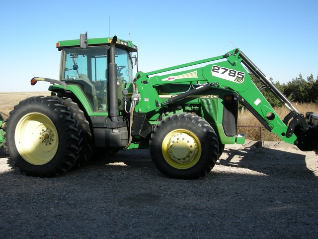 2001 JD 8210 tractor, MFW, 3 pt. pto, 6,427 hrs., Ser.# P012809, 480/80 R42 dual tires w/Koyker 2785 Pro Loader (nice)