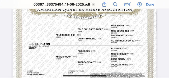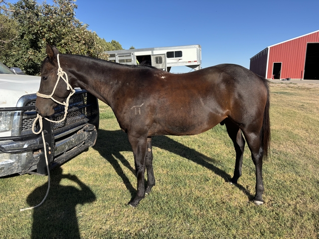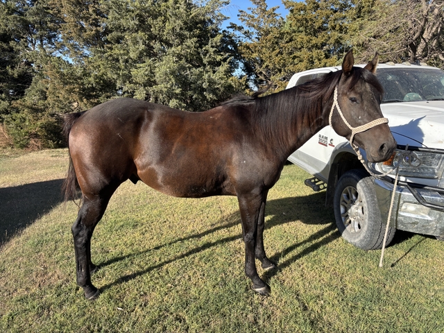 He's been ridden in the Feed Yard, gathered cows on pasture. I've roped the dummy and lead steer on him. He's good to shoe and gentle.