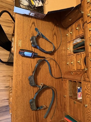 I have three garmin tracking collars that all work with the remote. Asking 500 for the works chargers collars and remote. Only selling to upgrade to a shock and tracking combo. 785-five three four-7242