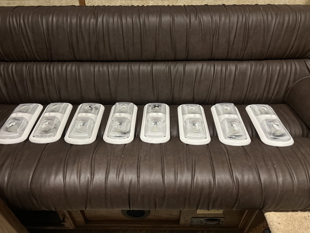 8 RV Dome Lights. Surface mount 12 volt. No scratches or damages. Screws included. these sell new for $28. Selling for $15 each or all for $100. Will ship if needed -call or text if needed 785-697-3005