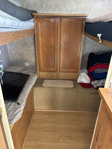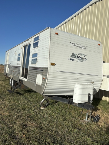 Springdale 38' bumper pull camper. Has 50 amp service. 2 slide outs. One in main bedroom and one In living room. Has the sliding patio style door. 2 air conditioners. Both have been replaced since I've owned it. Has an electric on demand water heater so continuous hot water. Household refrigerator not a camper fridge. It has 3 bunk beds in the front. It was a harvest camper for my employees. There is no holding tanks so it needs to be hooked to sewer and I've never used the fresh water tank so unsure about it. And the guy I bought it from never used it either. It has water damage in the back corner Of the back bedroom. That's the only problem with it that I know of. Call or text 785 275 2923. $4000