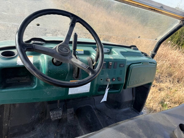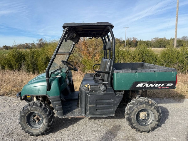 2008 Polaris Ranger 500 EFI, 4-wheel drive, plastic top and windshield. This side by side has a manual dump bed and only 30 hours on the new engine. 1045 total hours. This runs and drives good. Shipping is available anywhere in the United States. Please call us at 620-736-2038 for more information or to come look at it. Also, please visit our website at www.riggstractorcompany.com to view our current inventory.