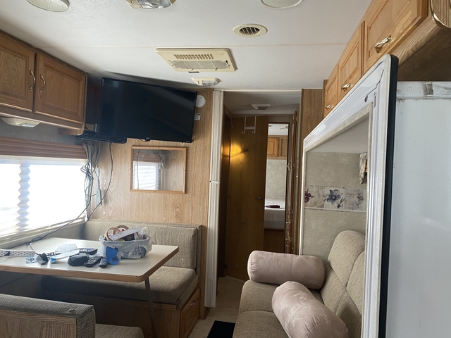 Has a 10.1 cu. ft. Magic Chef Top Freezer Refrigerator, Lp gas Magic Chef RV Cookstove with oven. Microwave, 32' Smart TV, Dish Network receiver & plug/play satellite dish , It does need the Awning Fabric Replaced. Has like new Queen size Memory foam mattress.\from the Ashley furniture store . RV Toilet Ceramic Standard 18" Height for Camper | White, No Hand Spray, Tub/shower with Folding Shower Door and Frame Sliding, Retractable, Outdoor Shower Spray Box Set with Lock on rear of trailer. Lp/electric water heater, Cold AC, & a Suburban Lp/furnace, weight distribution equalizer trailer sway control towing hitch bar 1/2 ton pullable $7000 or best offer