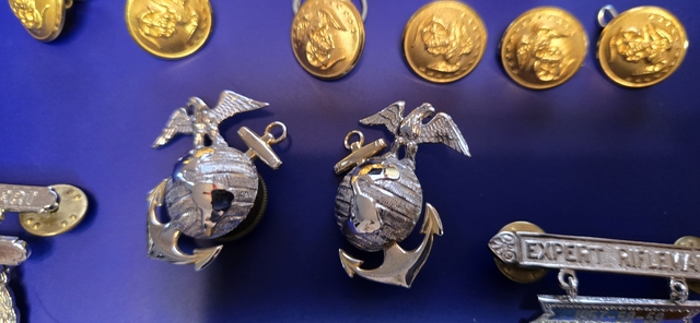 US MARINES UNIFORM BUTTONS, METALS AND BELTS OFF UNIFORM 1950S. asking $49