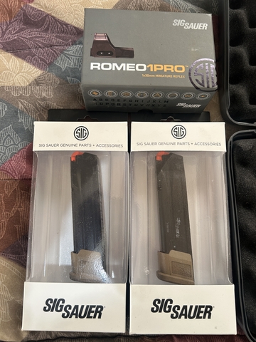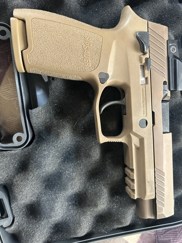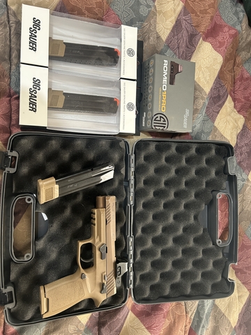 Here is a Sig 320F-9-m17-MS. Has a Sig Romeo1Pro on it. Has a total of 4 mags with it too, I will add some ammo (200 rnds of fmj reloads). It is a great shooting pistol but I need to raise money for Medical expenses (chemo induced neuropathy). I am asking $950.00 obo. I have never had any problems with it. Also comes with 200 rnds of remanufactured ammo.