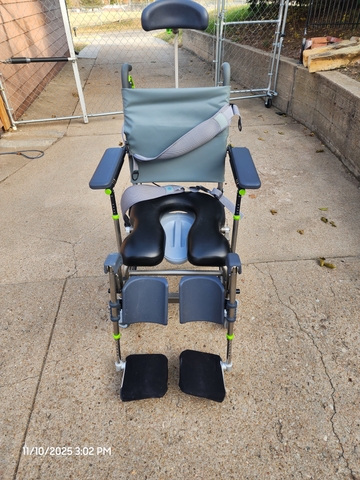 Almost brand new shower chair the reclines the seat and back rest separately for any angles you may need. Castors move in all directions and have locks. Was over $6000 new.