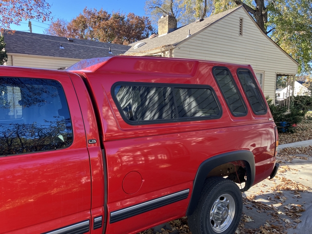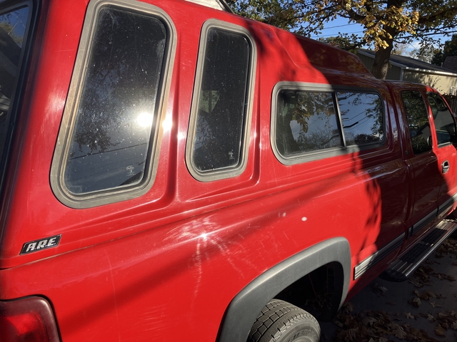 ARE brand topper for 3/4 ton 8 foot pickup bed. Red in color. Excellent shape Still on truck. Lockable back window. Vented sliding windows on both sides Located in Great Bend Ks