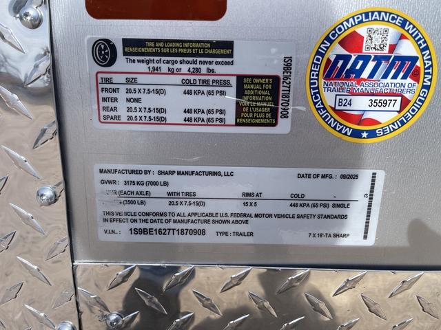 2026 Sharp 7x16 Tandem Axle V-Nose Cargo Trailer