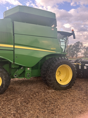 2017 S670 1867 engine hrs 1350 separator. Pro drive transmission,520/85R42 duals,5 speed feeder house. 26 ft high capacity unload. New vertical and horizontal unload augers this fall. Call 402-two-five-seven-7143