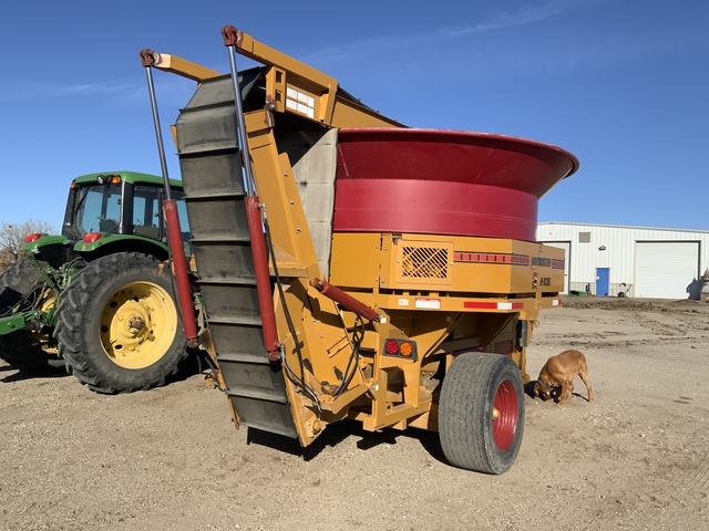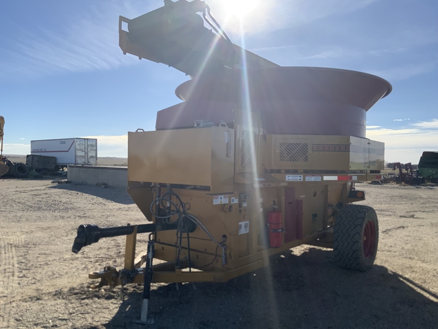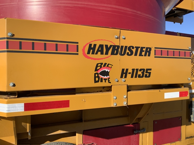 2022 Haybuster H-1135 tub grinder, 26' hyd fold high-capacity stacking conveyor, 24" wide conveyor, controls for: forward, reverse, stop, speed, raise, and lower; electronic control governor adjusts tub speed and direction and tracks grinding and job hours, 12" diameter x 4' dual augers for discharge, very nice tub grinder.