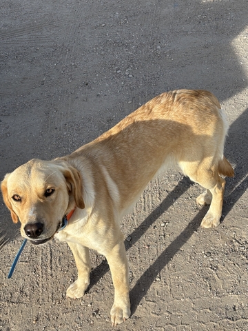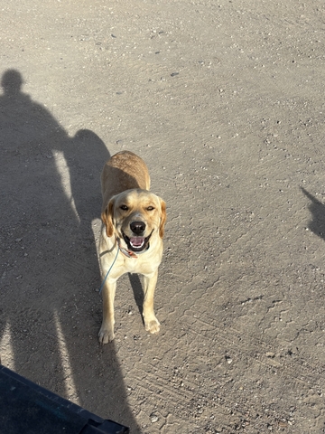 1 1/2 years old. She has started obedience training and is very friendly to everyone. Great with kids. Tried to train as a hunting dog but didn't have the instincts so she needs a good loving home.