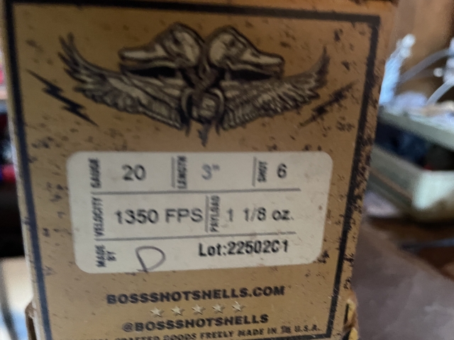 I have 2 boxes of Boss legacy 20 ga. 3/5 shot and 1 box Boss legacy 20 ga 6 shot for sale @ $40.00 ea box.