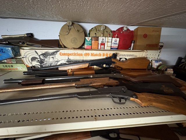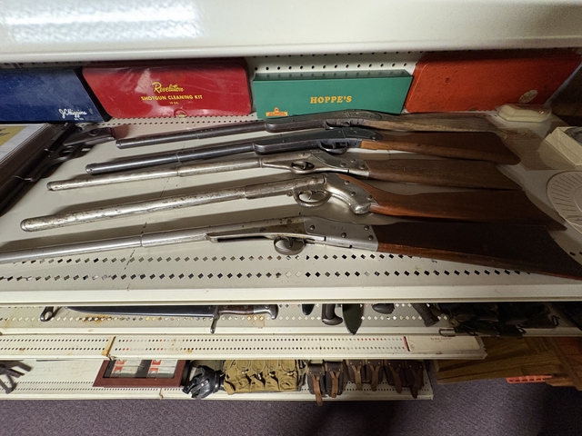 31 long ones most of which are very old Plymouth made. Quite a bit of memorabilia and accessories. Have a few pistols also. Have a double barrel for sale separately also. Looking for offers can send more information and photos to a serious buyer.