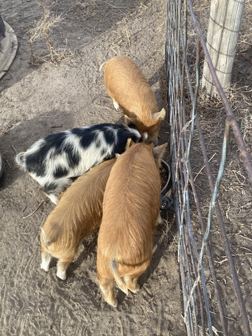 I have 3 guilts and 1 boar born July 9th. The boar has the same father to the guilts but different mother.The boar was born at the end of July and he is the smallest red one in the pictures