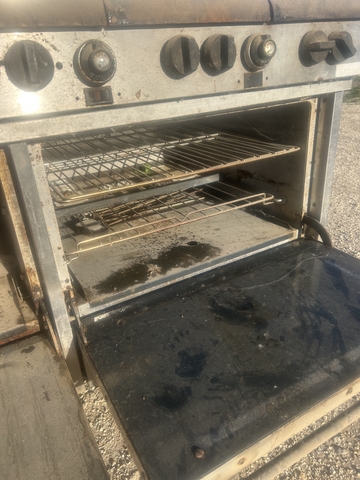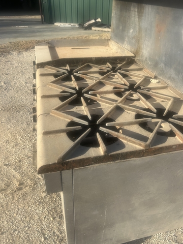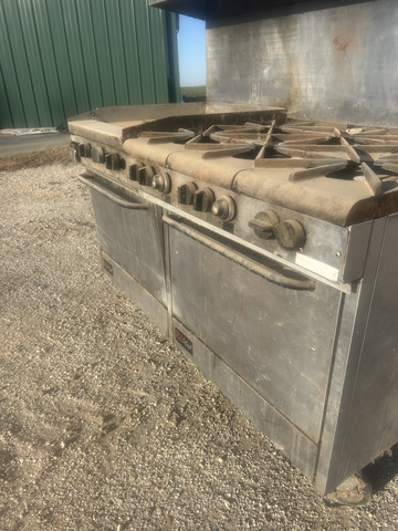This is a 6 burner double oven stove with a griddle. Just needs a good cleaning. Call 785-650-7283 or 785-623-1287.